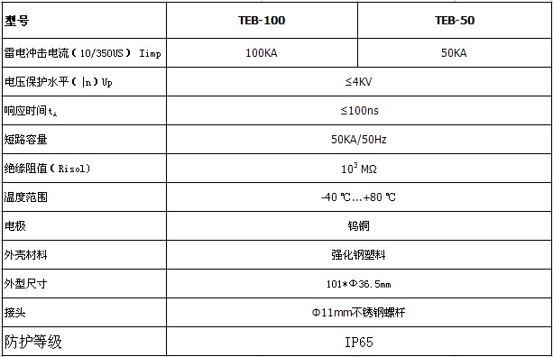 TEB系列產(chǎn)品等電位連接器正常情況下,地極被分離;雷擊來臨時系統(tǒng)中個獨(dú)立相絕緣的部分實現(xiàn)等電位連接,有效防止地電位反擊損壞設(shè)備和保護(hù)設(shè)備安全作用